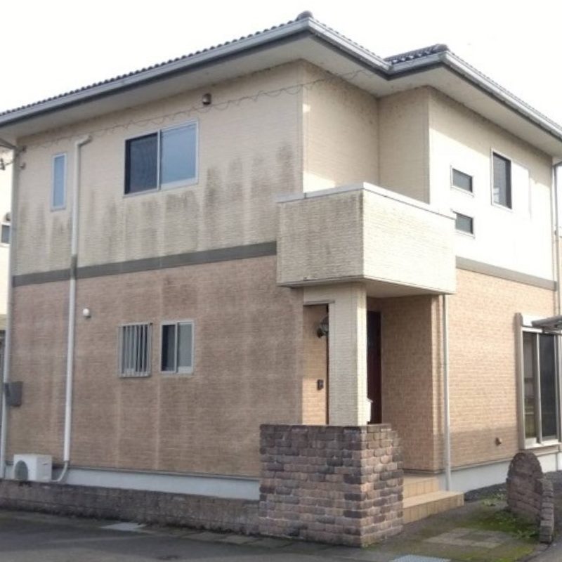 スタッフA家も同じくらいの築年数でして、黒ずみが目立ちにくい外壁カラーにはしたもののついに緑が目立ってまいりました(泣)