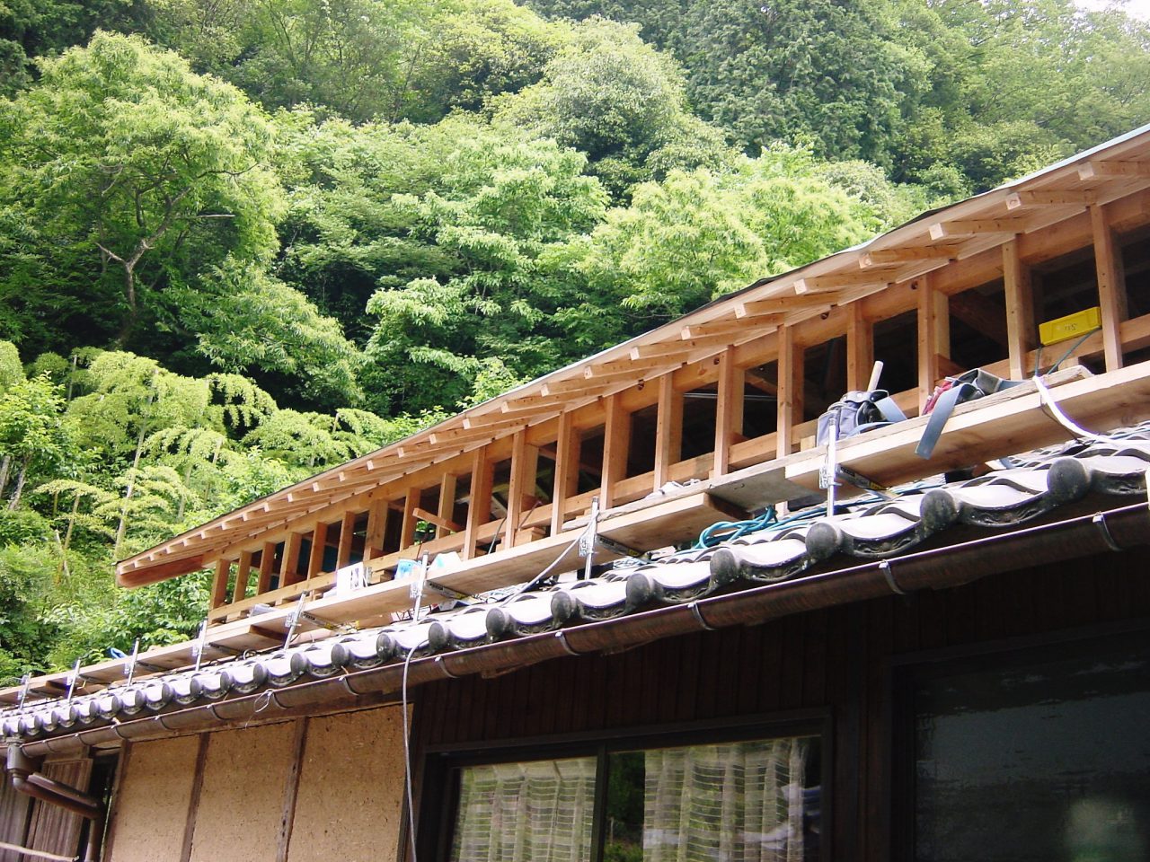 わら屋根にトタンをかぶせた屋根を老朽化にともない瓦屋根に玄関の改造をお世話になりました。