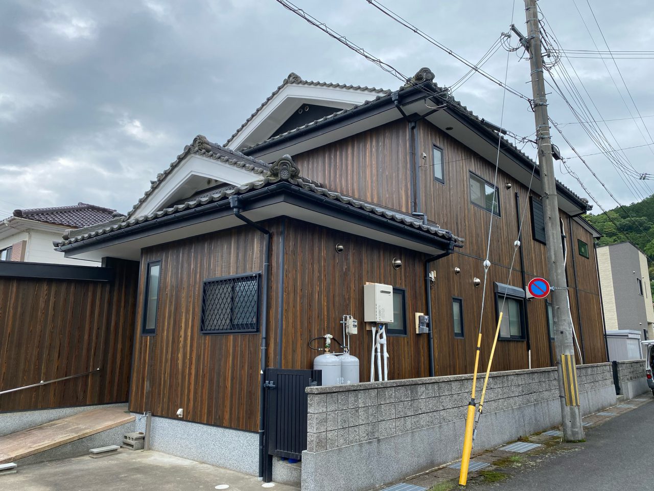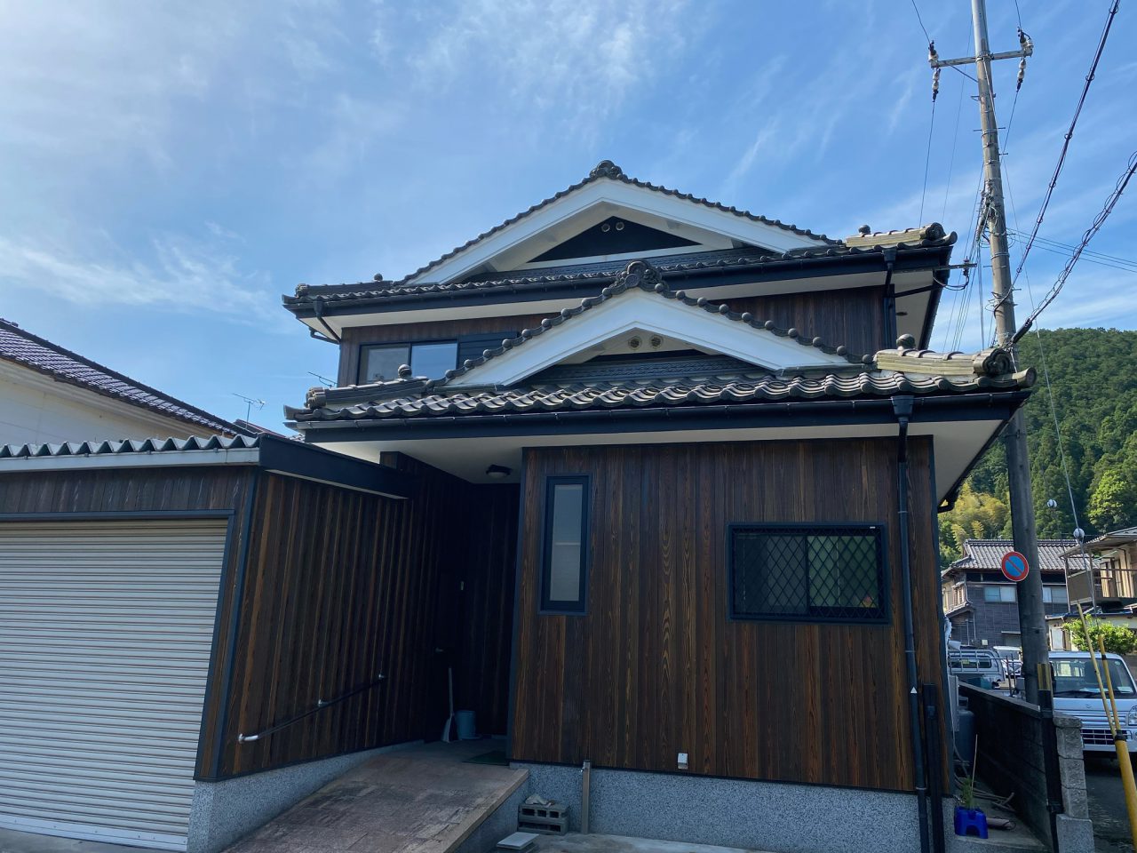 入母屋の和風のお家にはやっぱり焼き板がよく似合います✨
