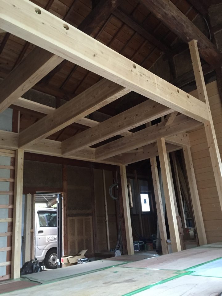 昔の家ならではの丸太の梁、や地元の木で作られた骨組み…。