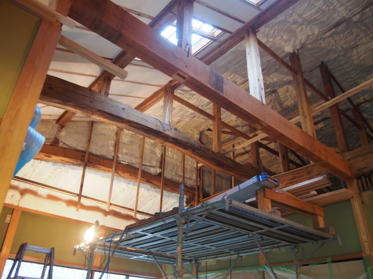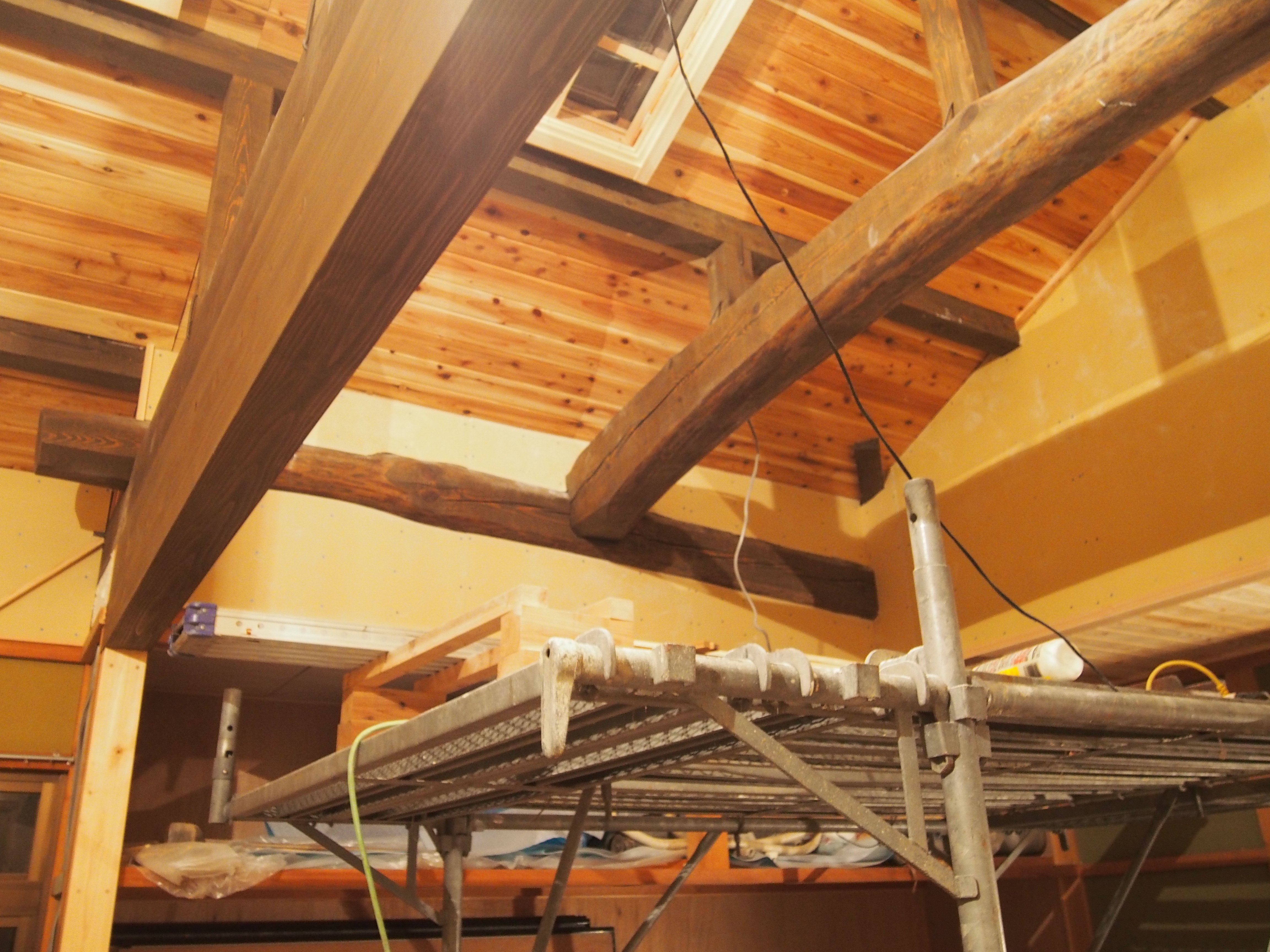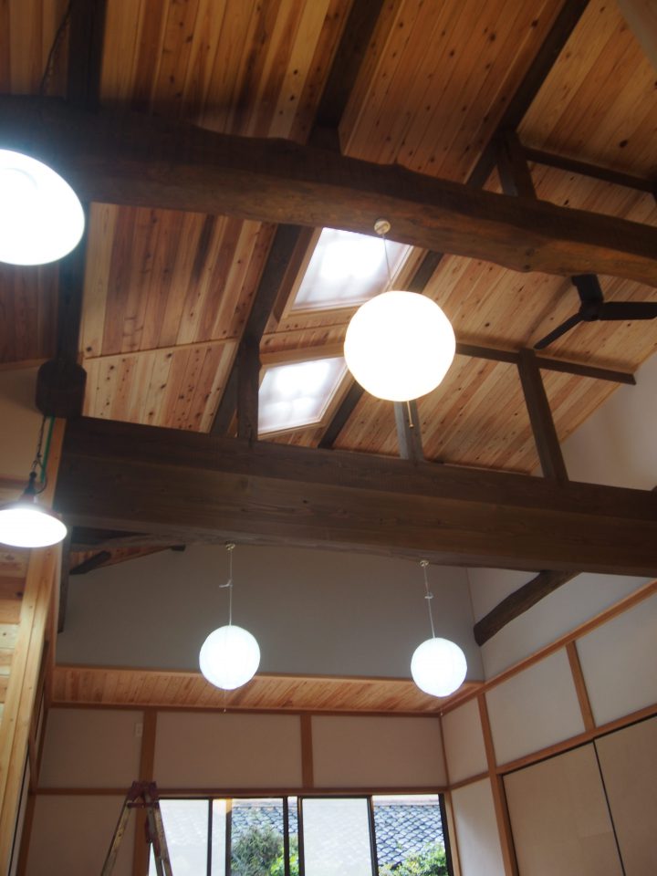 もともとの建物が施工された大工さんの技術が素晴らしく現在ではなかなか手に入れることのできない良い材料が使われているので既存の梁を見せ時間を越え…昔の大工さんの仕事を活かす。