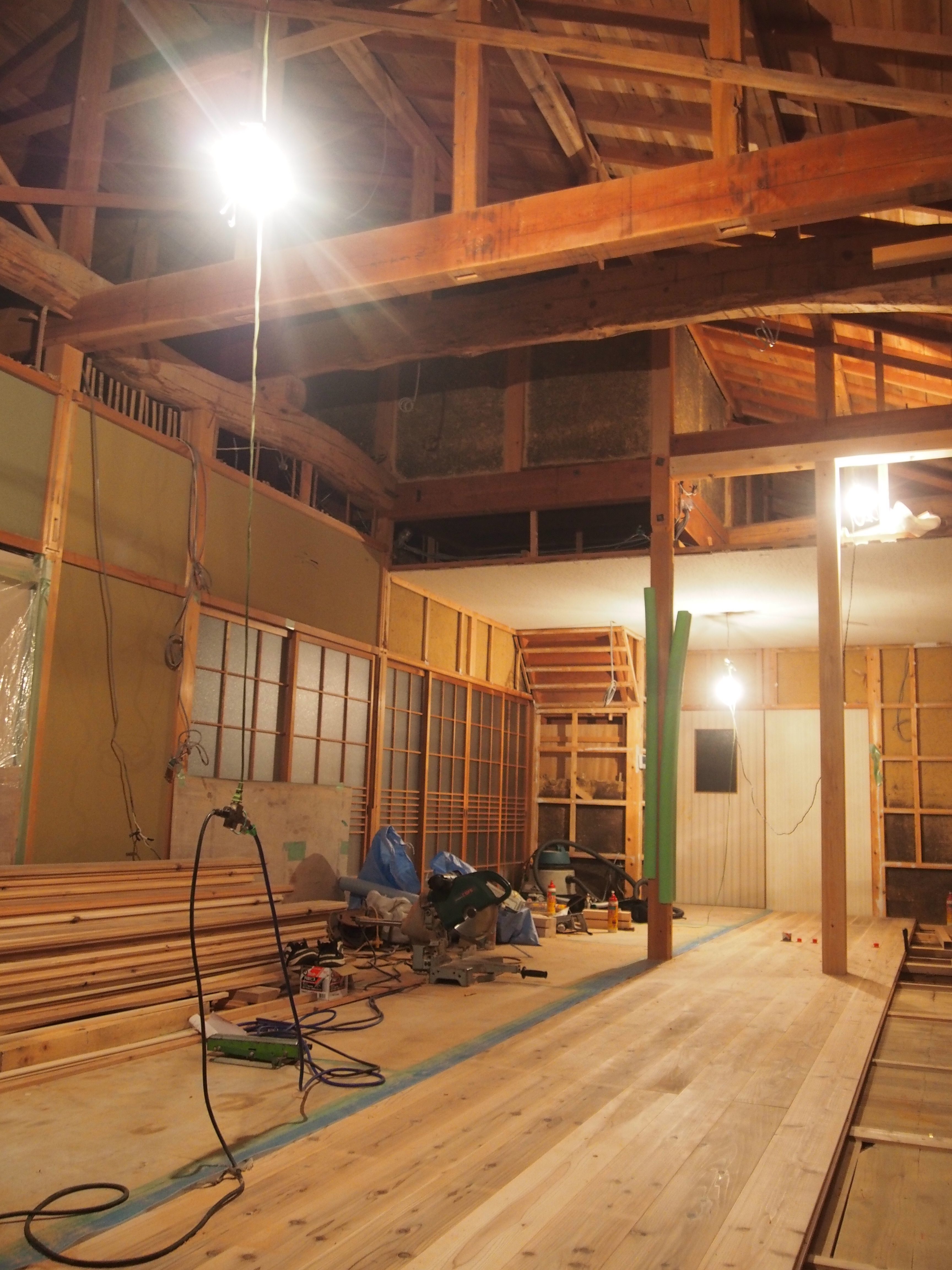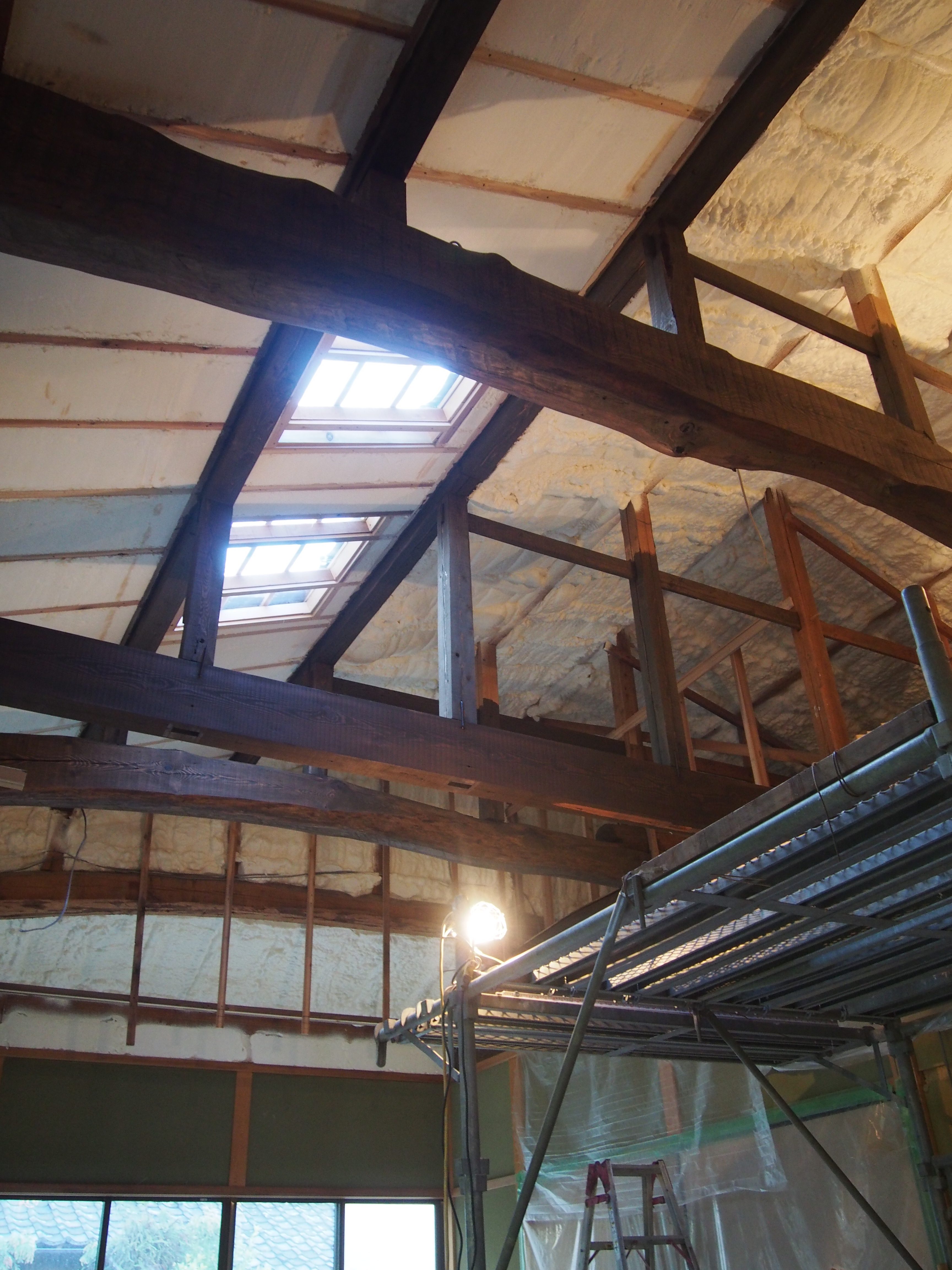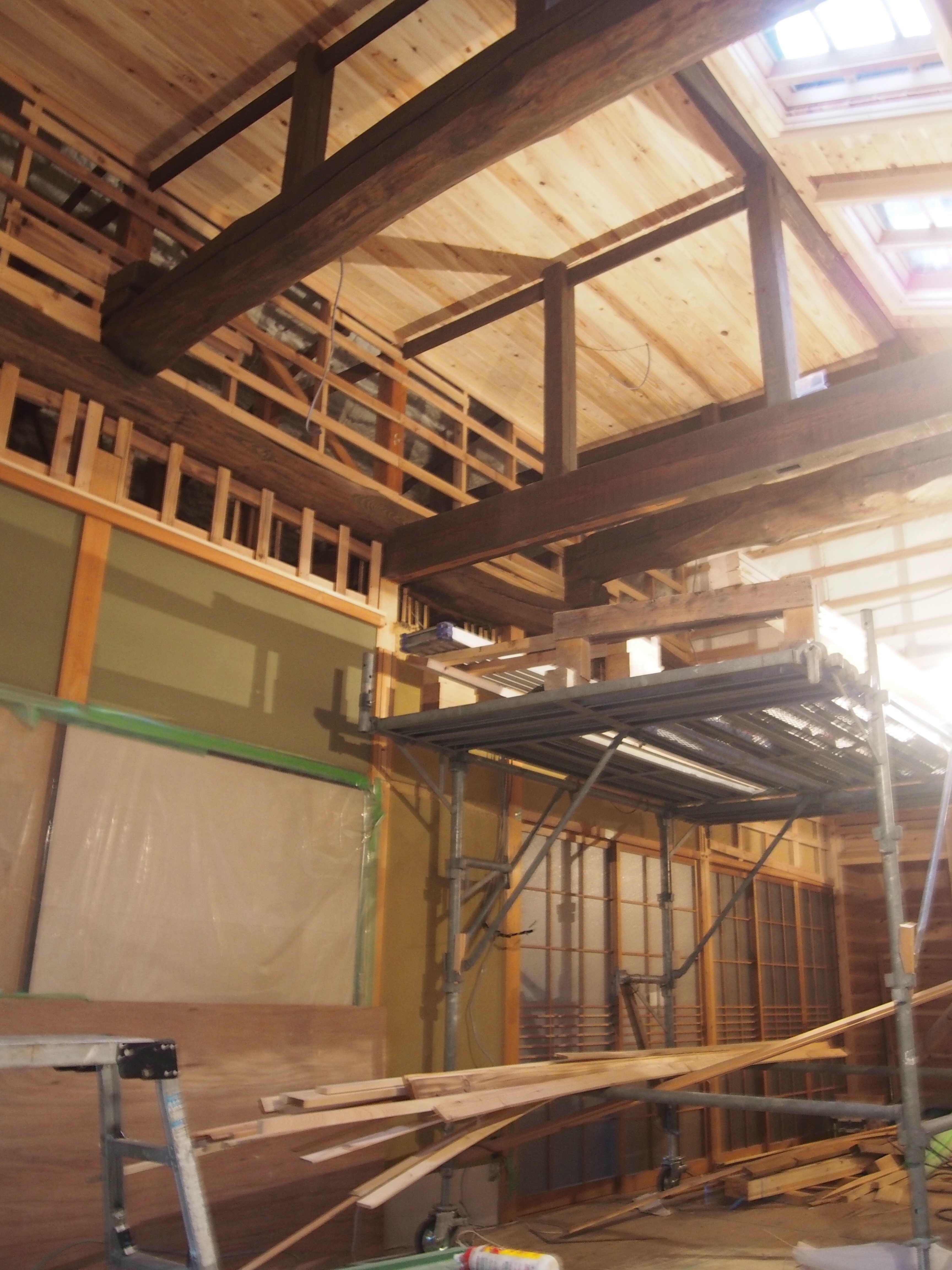 もともとの建物が施工された大工さんの技術が素晴らしく現在ではなかなか手に入れることのできない良い材料が使われているので既存の梁を見せ時間を越え…昔の大工さんの仕事を活かす。
