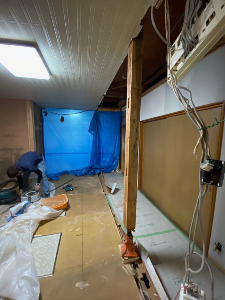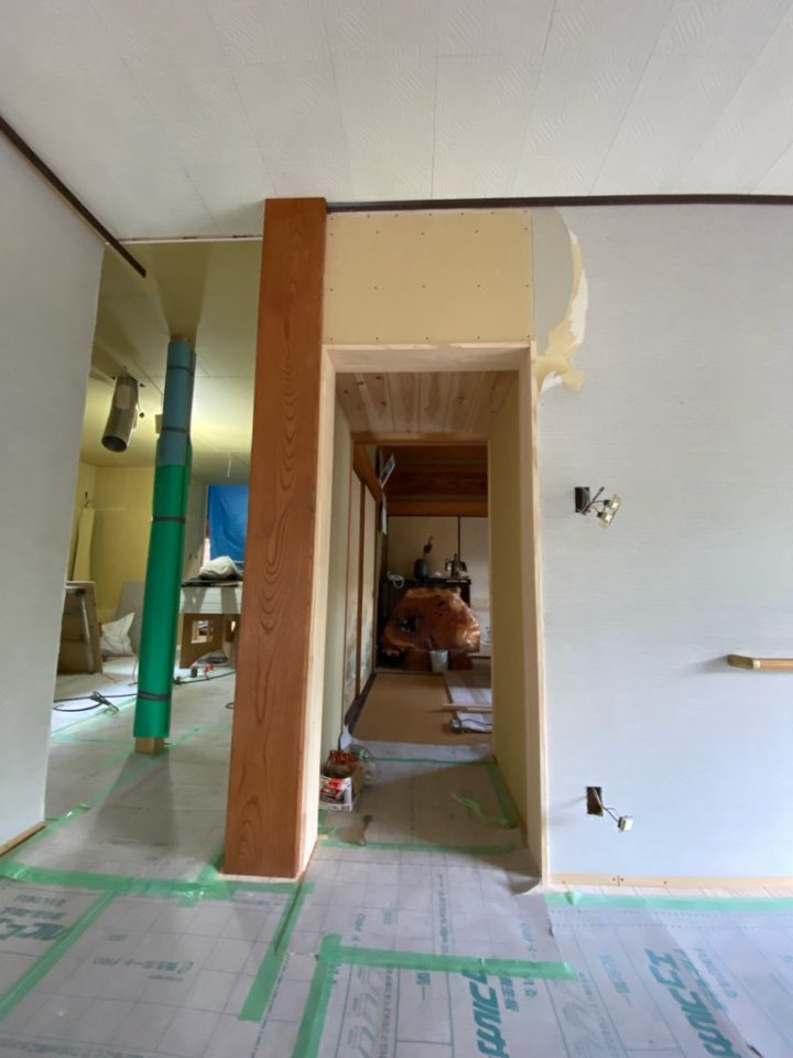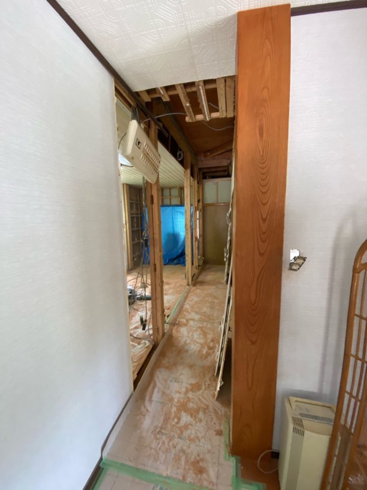 壁と柱を解体して、廊下スペースを広げて…。