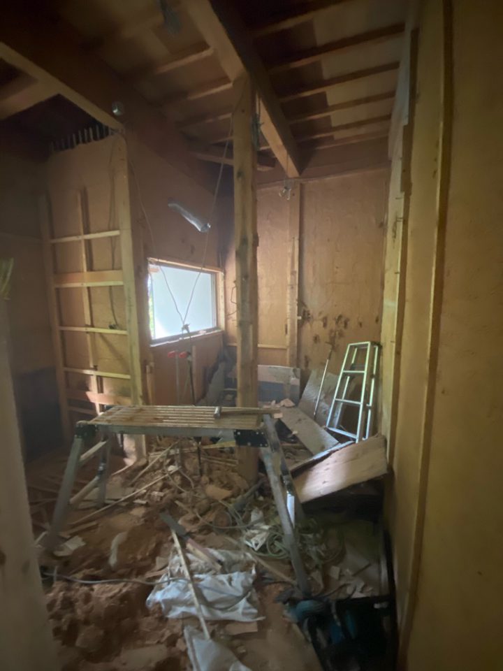 現在の家の状態、床下の状態や屋根裏の骨組、現在の高さ、この柱はどこの荷重を支えているのか?など見れる限り見て図面を作成するところから始めます。