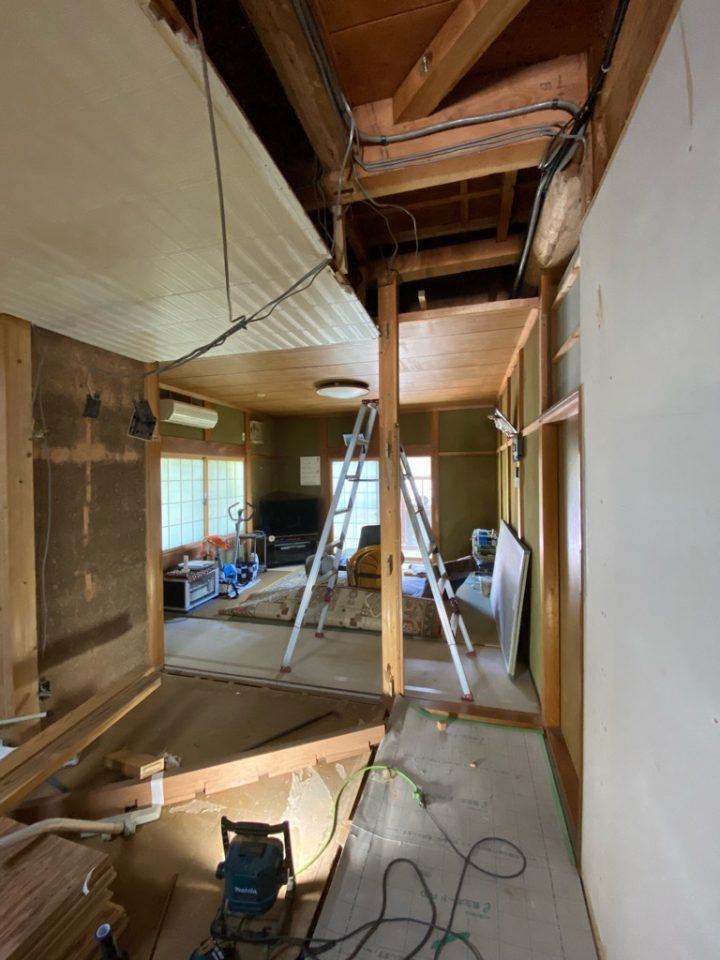 元々の骨組みがしっかり太い梁が使われていた事もあり、残す予定だった柱が取ることが