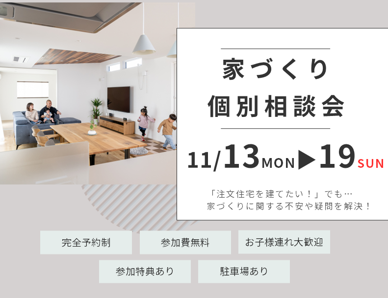 『家づくり個別相談会』 平日も開催! 11月13日(月)~19日(日)の7日間