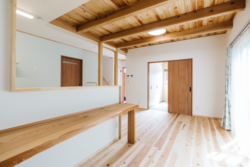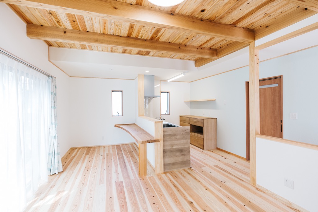 梁見せ天井で開放的で温かみのあるリビングダイニング