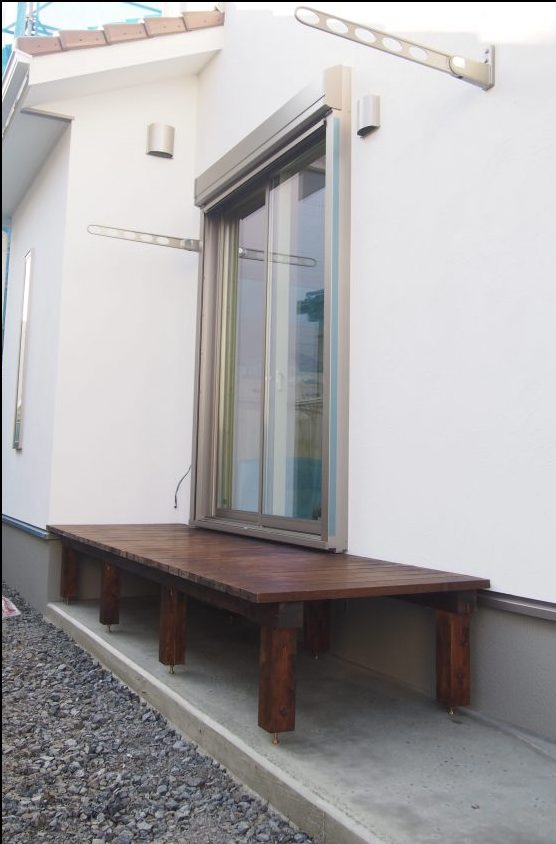 リビングから外に繋がるウッドデッキ