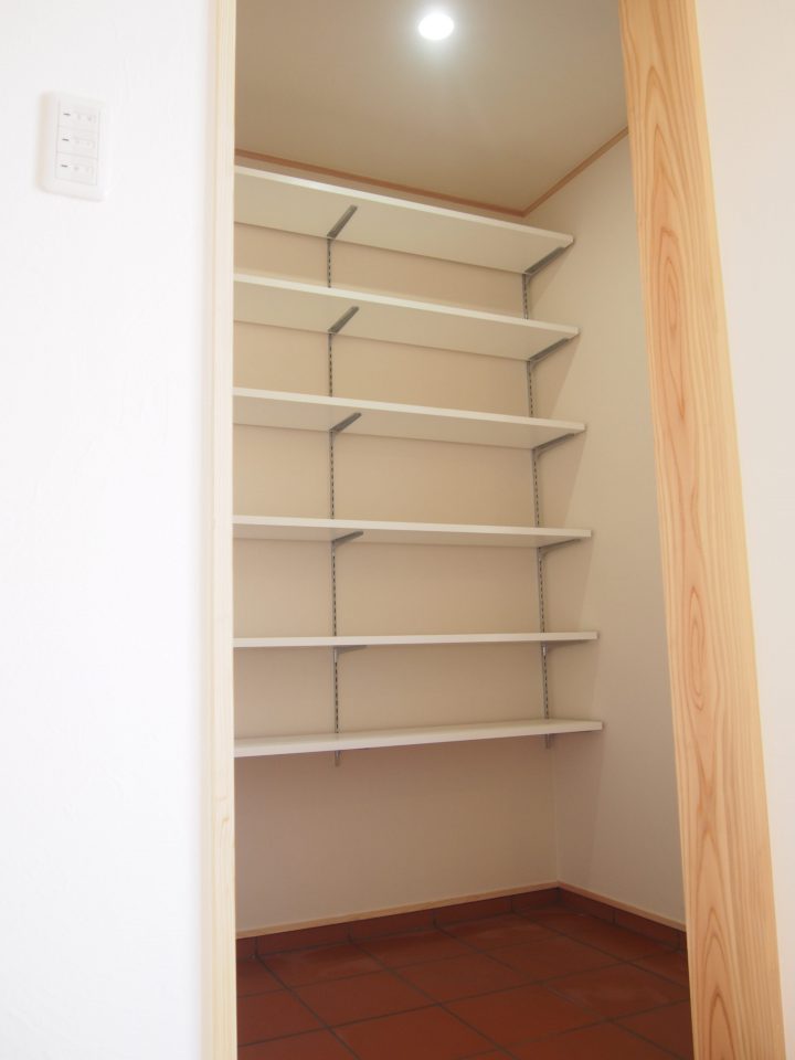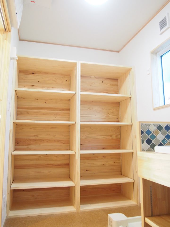 洗面脱衣室。タオルやパジャマなど家族分が余裕をもって入る収納