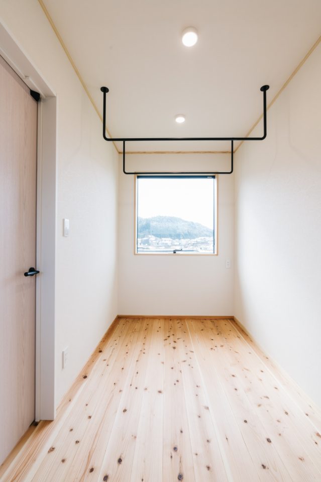 物干しスペースに隣接したファミリークローゼットで服の収納もスムーズ