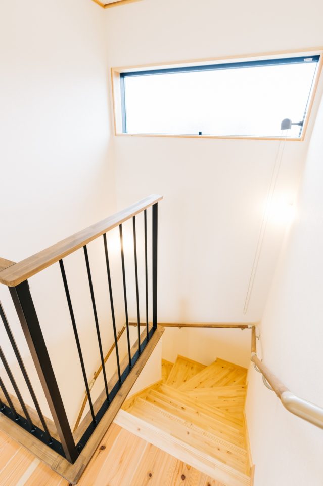 2階に物干しスペース。ブラックアイアンバーで見た目も◎