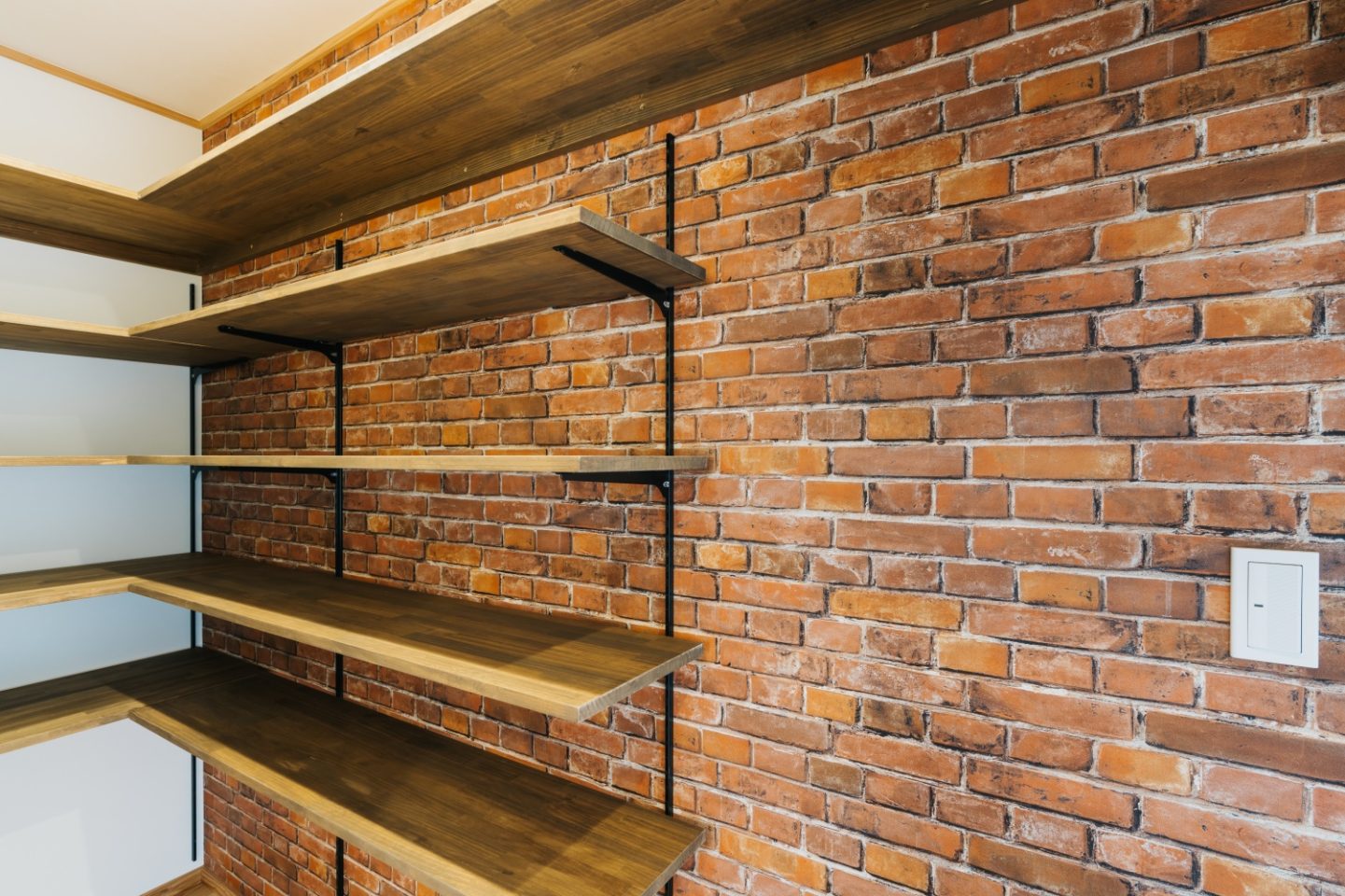 レンガ調のアクセントクロスのパントリー