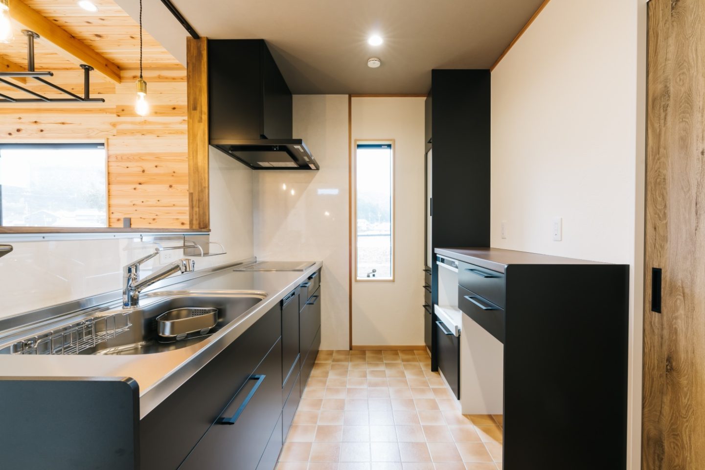 白い壁に際立つクールなキッチン