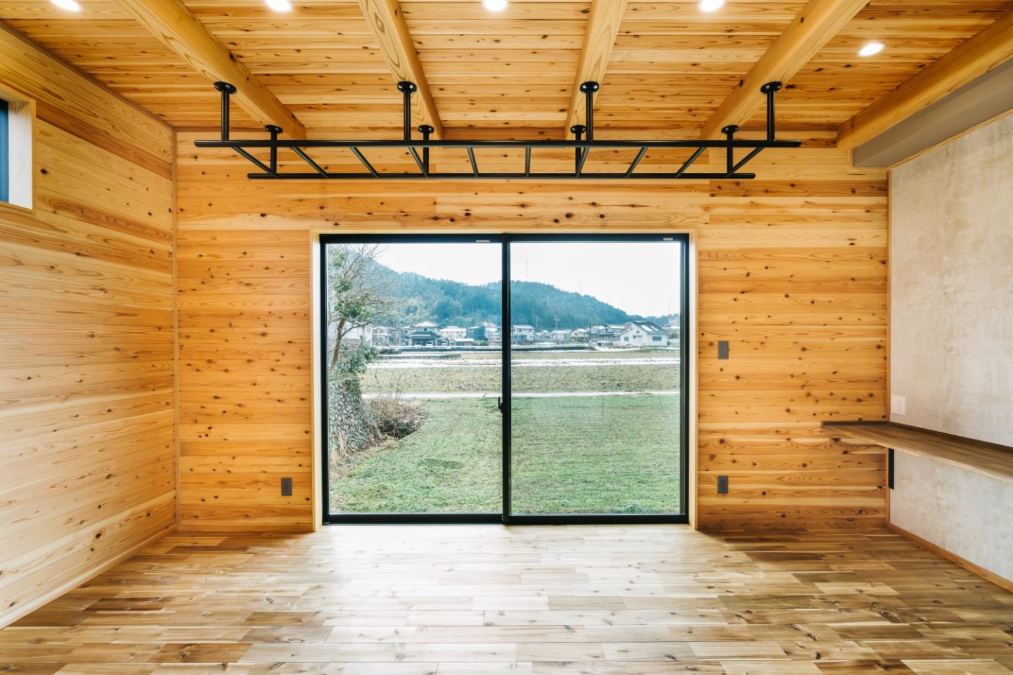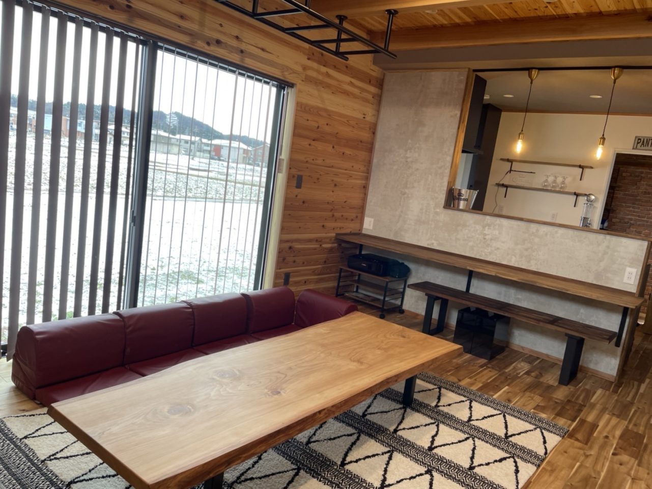 部屋全体が無垢の木に囲まれた癒しのリビング。